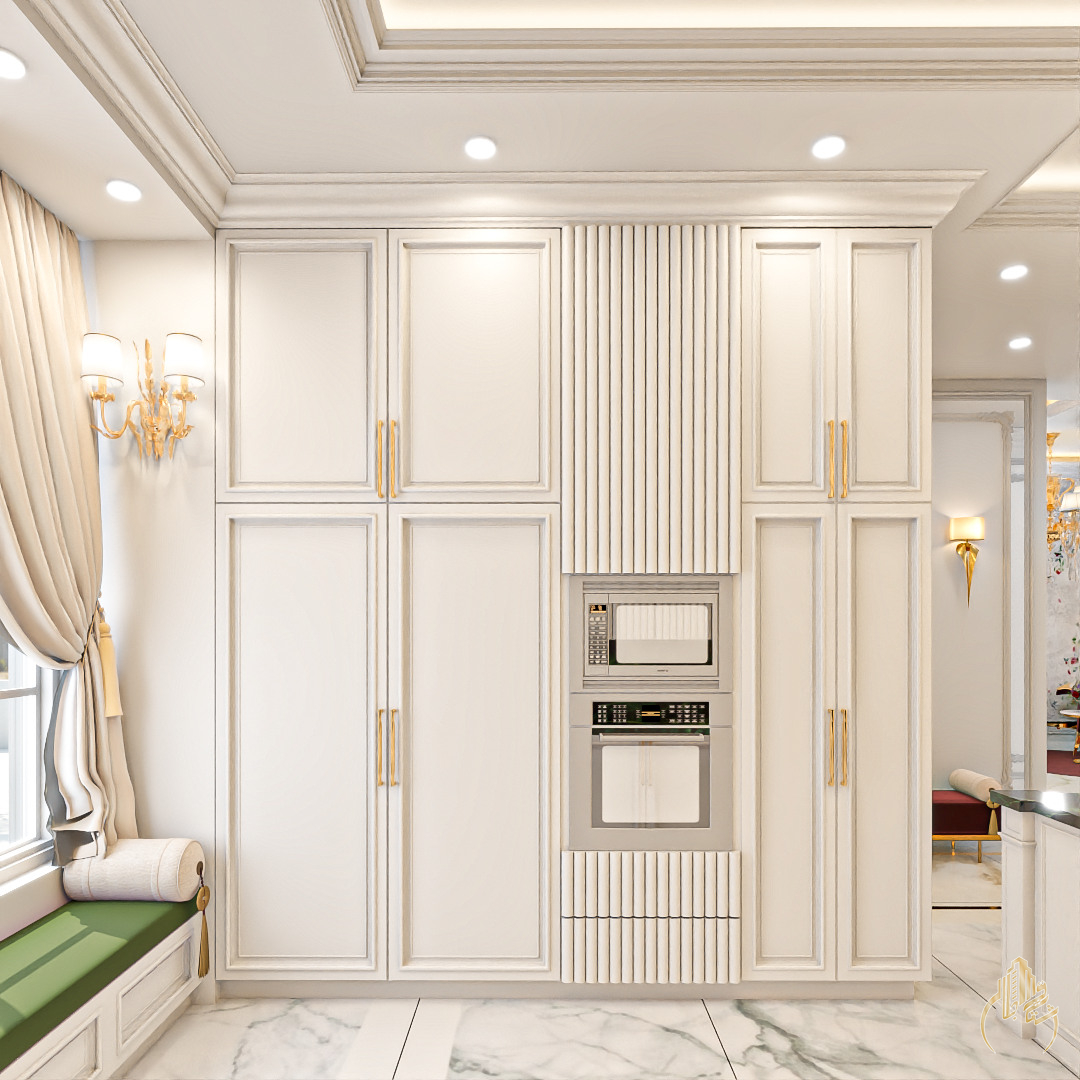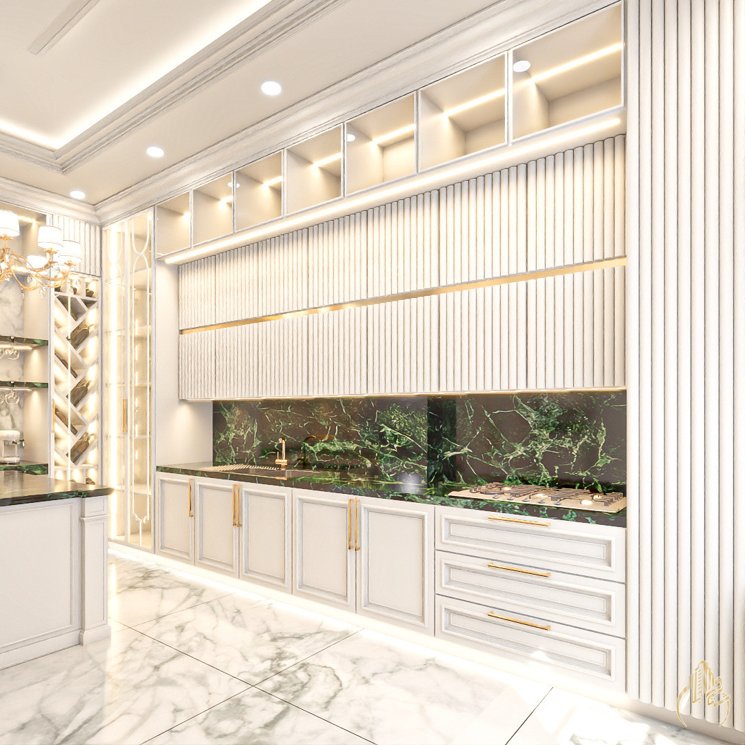 همانطور که مشاهده می‌کنید، این آشپزخانه کلاسیک توسط تیم حرفه‌ای مهندس شقایق جلالی طراحی و اجرا شده است که تمام اصول زیبایی‌شناسی و فنی را در دل خود جای داده است.